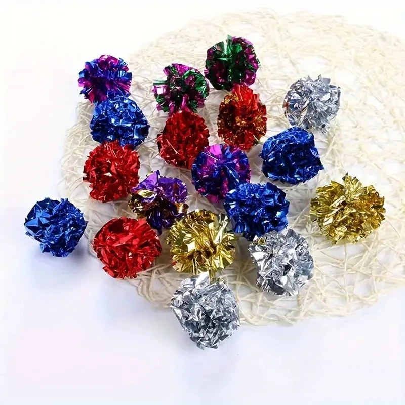 10pcs Colorful Crinkle Balls Sound Tin Paper Toy for Cat Durability Vocalization Dolls Playing Interactive Bite Squeak Toys
